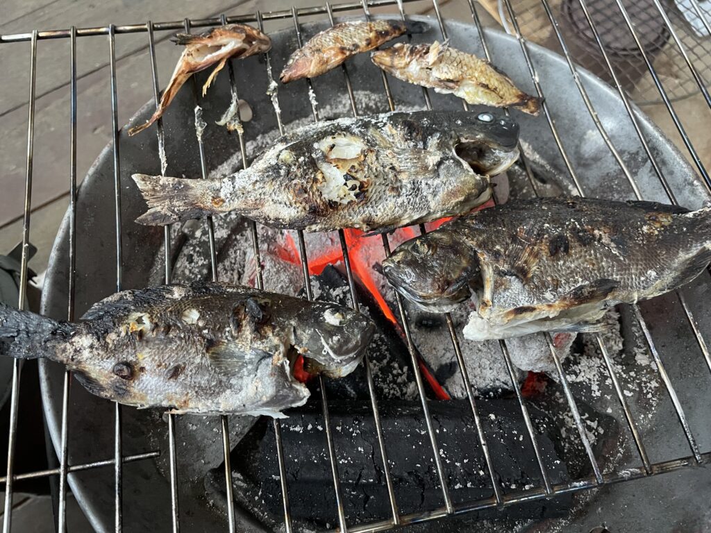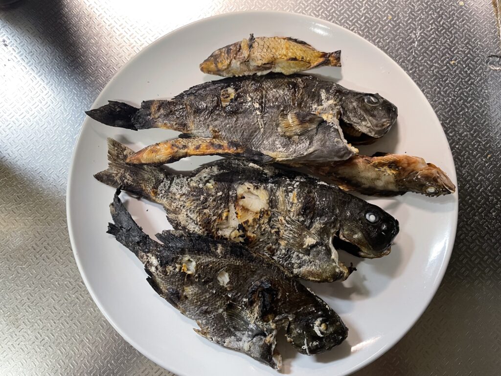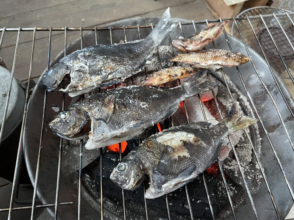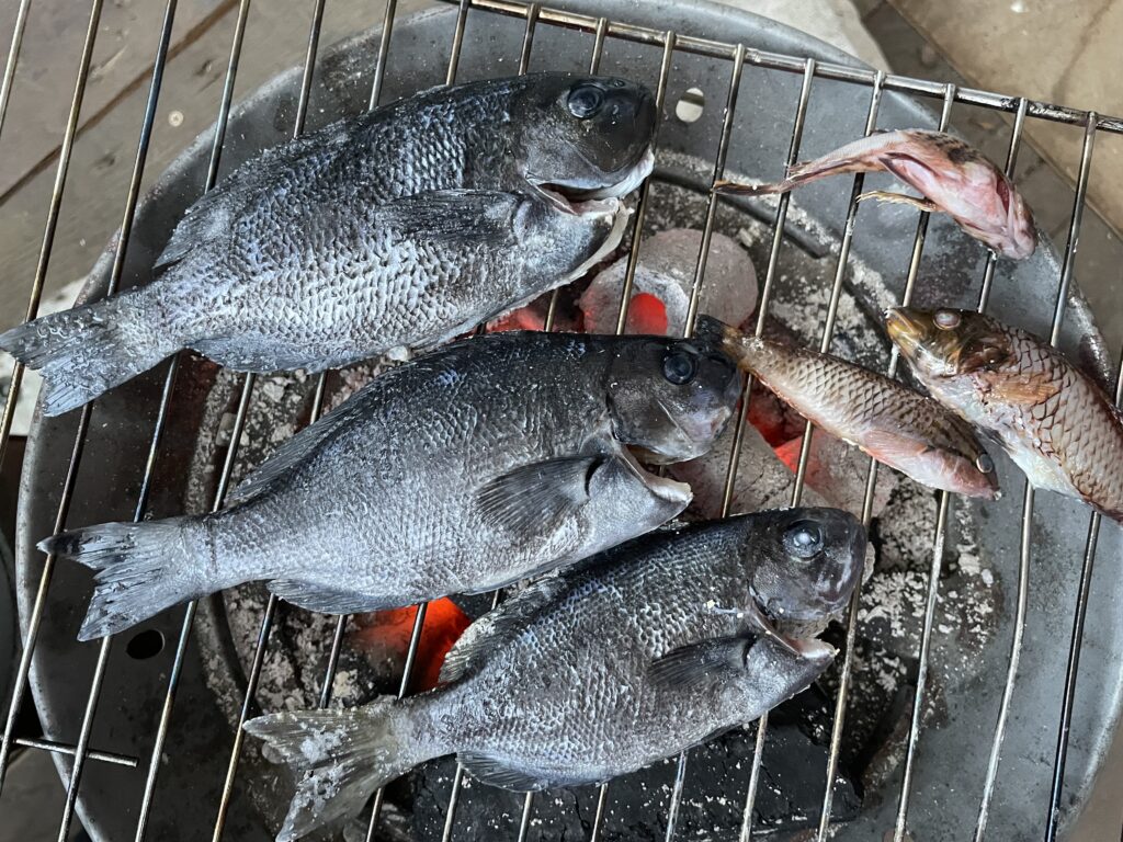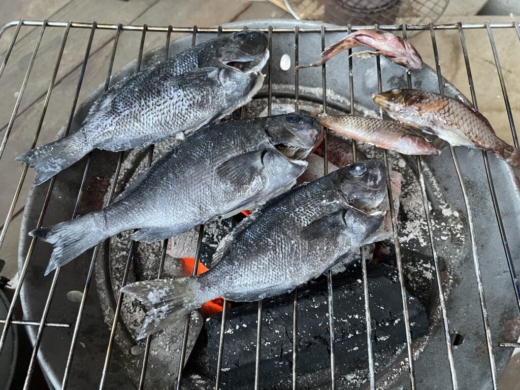 釣ったメジナを七輪で焼いて食べる!