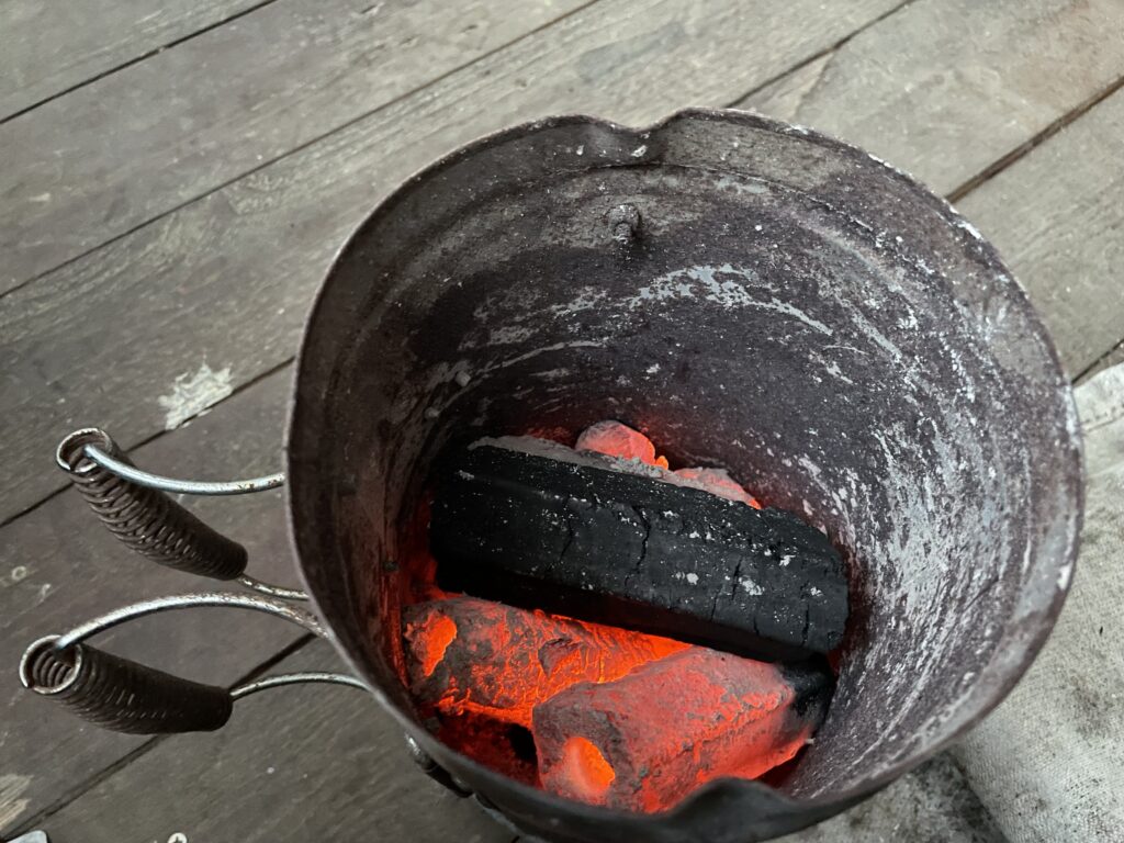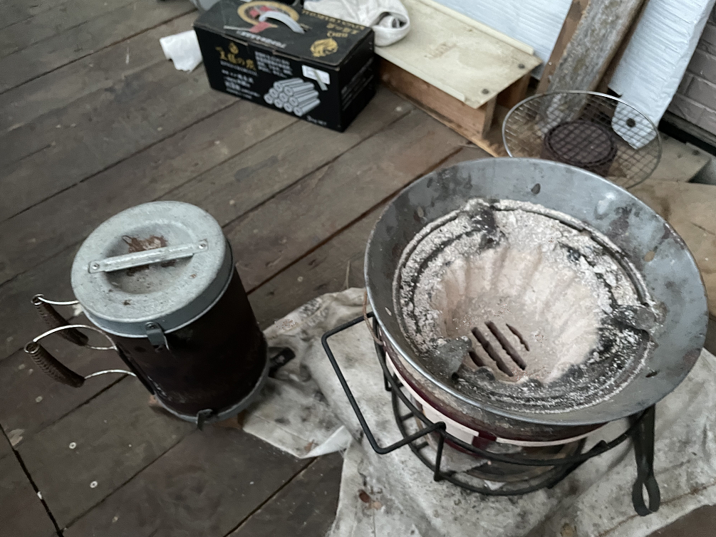 焼き終わったあとの炭は、火消し壺へ入れてしまえば安全な消火ができます。