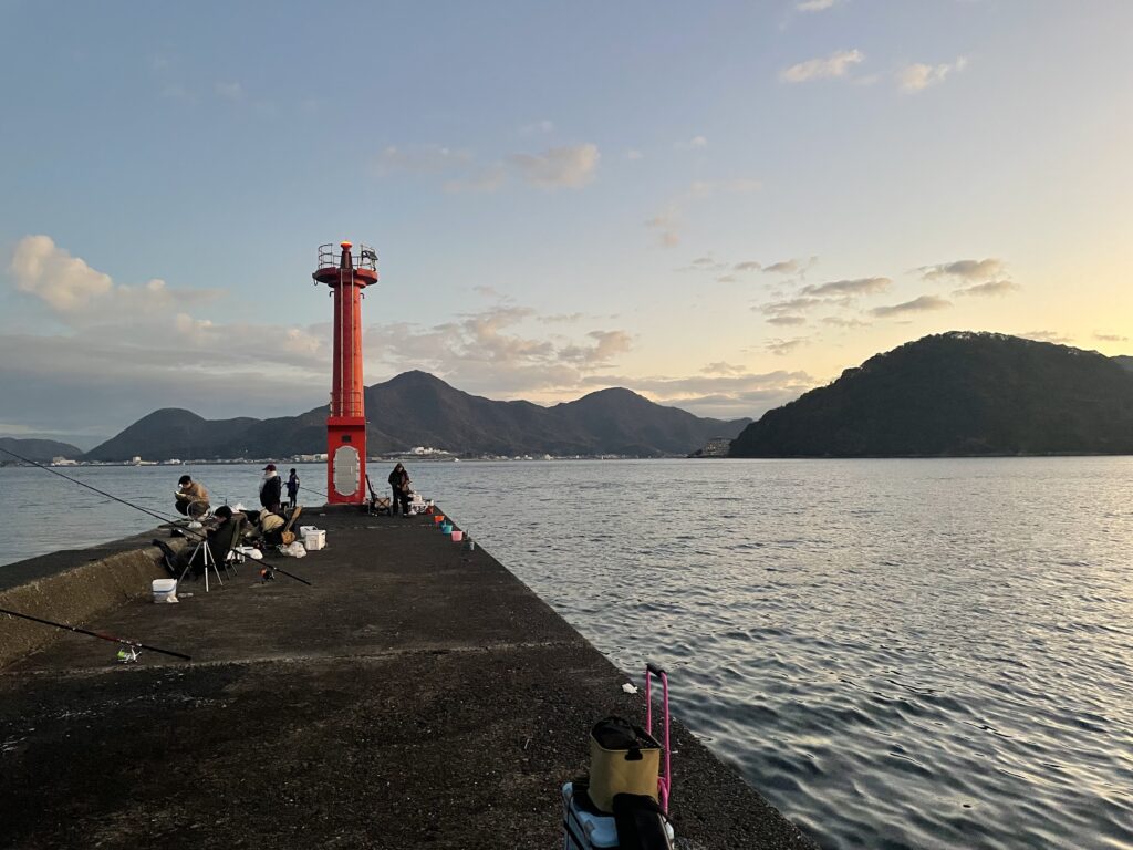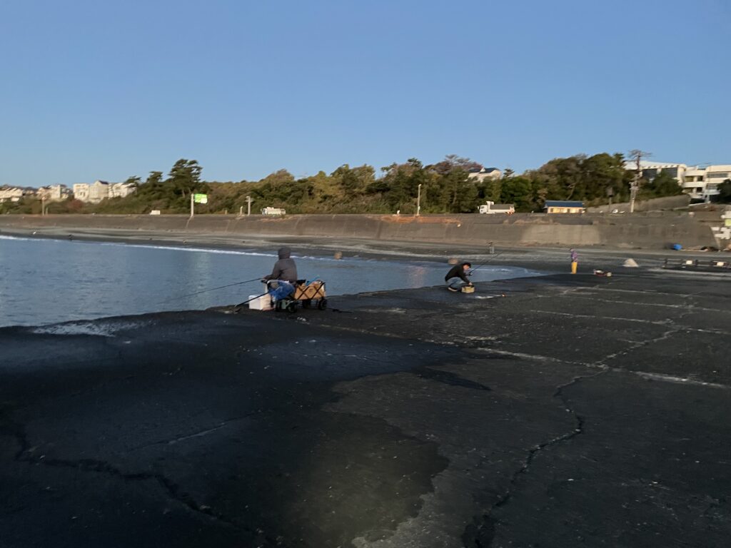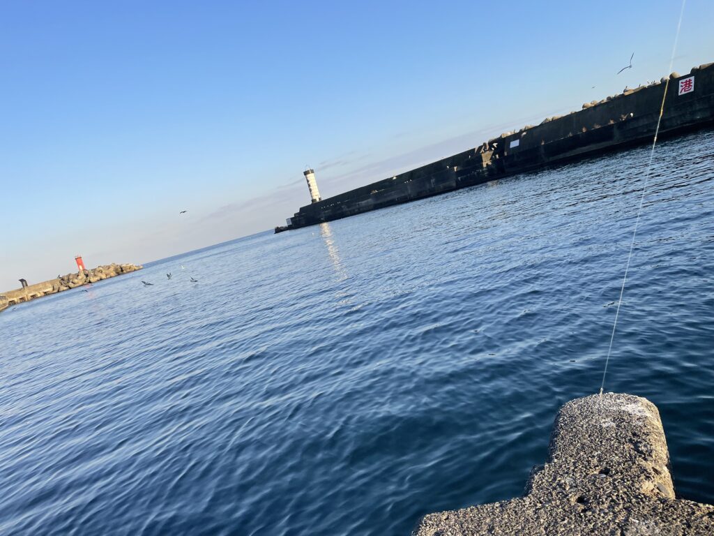 待てども待てどもアタリなどなく、海を眺めながら波音を聞きながらクッソ寒い堤防の上で何時間も過ごします。