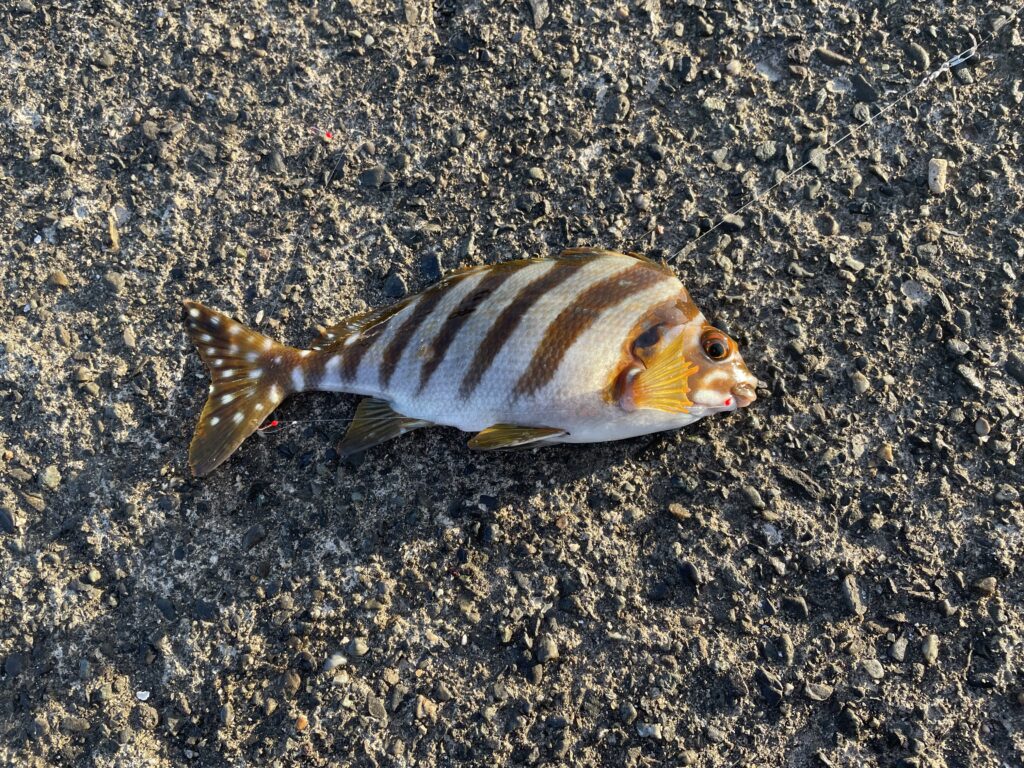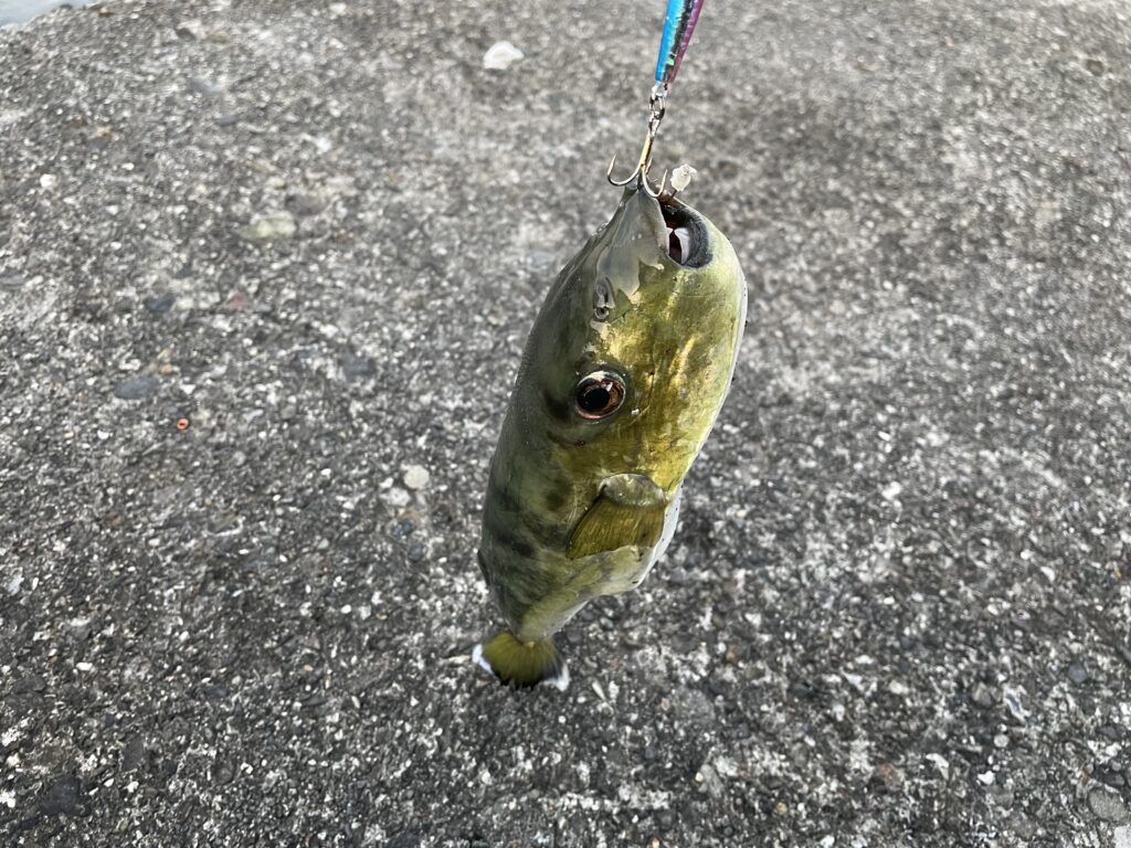 カサゴとベラを海の中にリリースしたあとに、こちらのアイゴが釣れました。